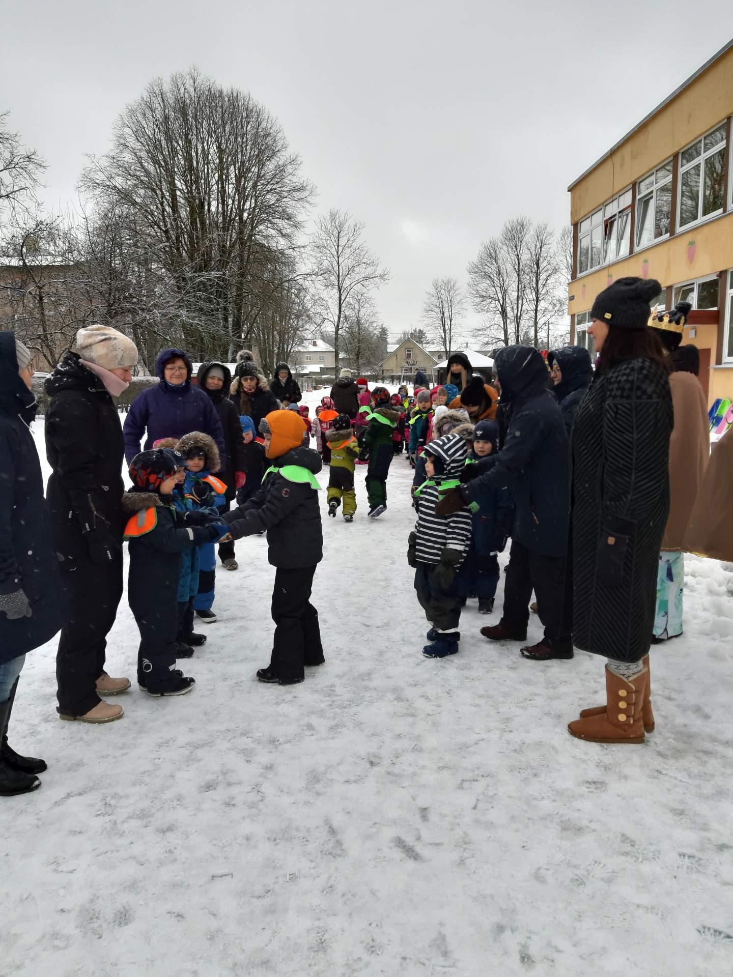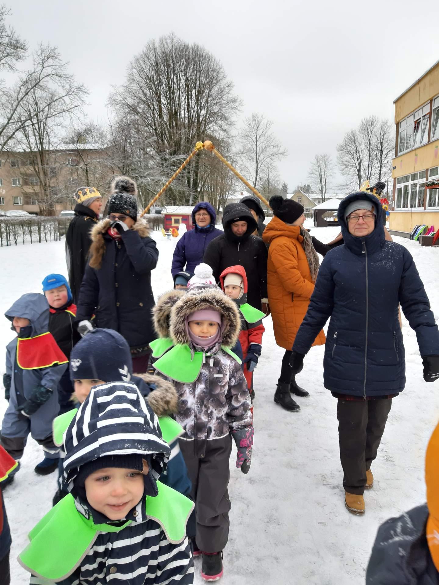 6. jaanuaril sammusid lasteaia õuele oma täies hiilguses 3 kuningat. Ikka selleks, et kolmekuningapäeval kuulutada lõppenuks jõuluaeg. Kuningad andsid teada, et majas leiduvad päkapikud peavad tagasi jõulumaale minema ning jõulupuudeks toodud kuusepuud tuleb kuuskedemaale saata. Lauldi, tantsiti ning mindi läbi kuningate moodustatud värava jõuluajast välja. Lasteaia koolieelikud aga toimetasid koos päkapikuga ja 3 kuninga valvsa pilgu all saalikuuse kultuurikeskuse juurde ühisele lõkkeplatsile.